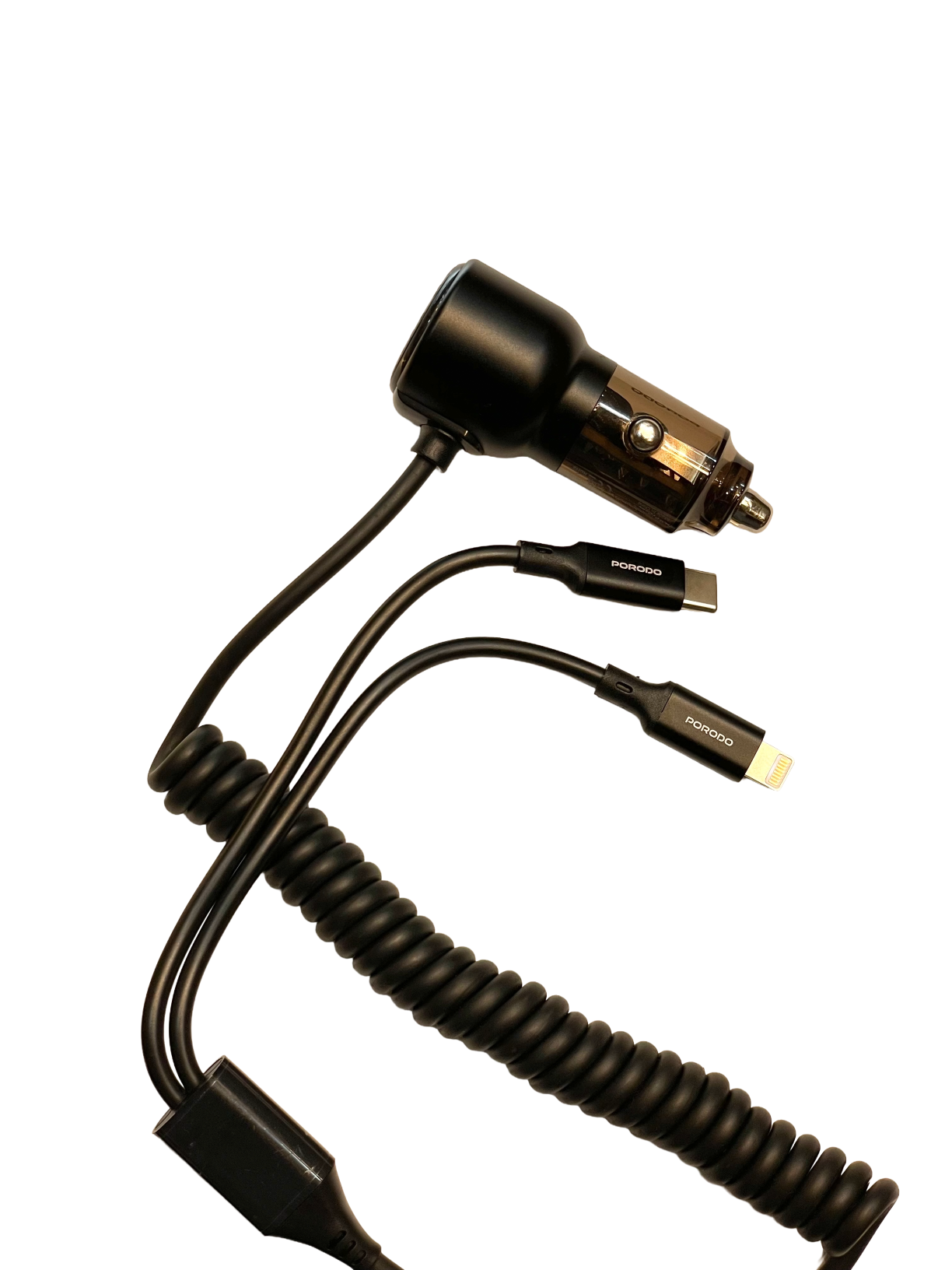 معرفی محصول شارژر فندکی Porodo 68W همراه با دو کابل Type-C و Lightning