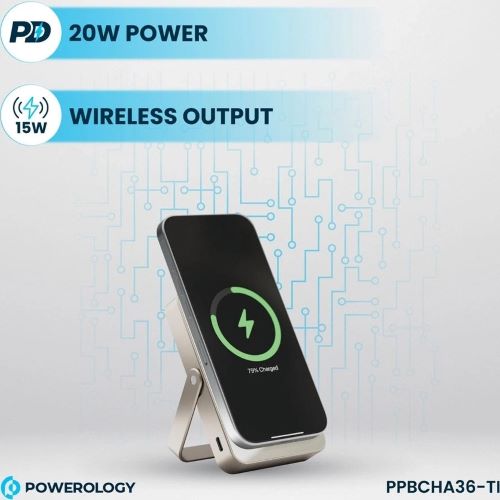 پاوربانک پاورولوژی مدل PP036 ظرفیت ۱۰ هزار میلی آمپر ساعت مگ سیف یکی از ویژگیهای جذاب این محصول، پایه استند داخلی است که امکان استفاده راحت از گوشی هنگام شارژ را فراهم میسازد؛ کافی است گوشی خود را روی استند قرار دهید و همزمان از آن برای تماشای فیلم، تماس تصویری یا کارهای روزمره استفاده کنید. همچنین فناوری MagSafe باعث اتصال مغناطیسی سریع، ایمن و بدون نیاز به کابلهای اضافی میشود.